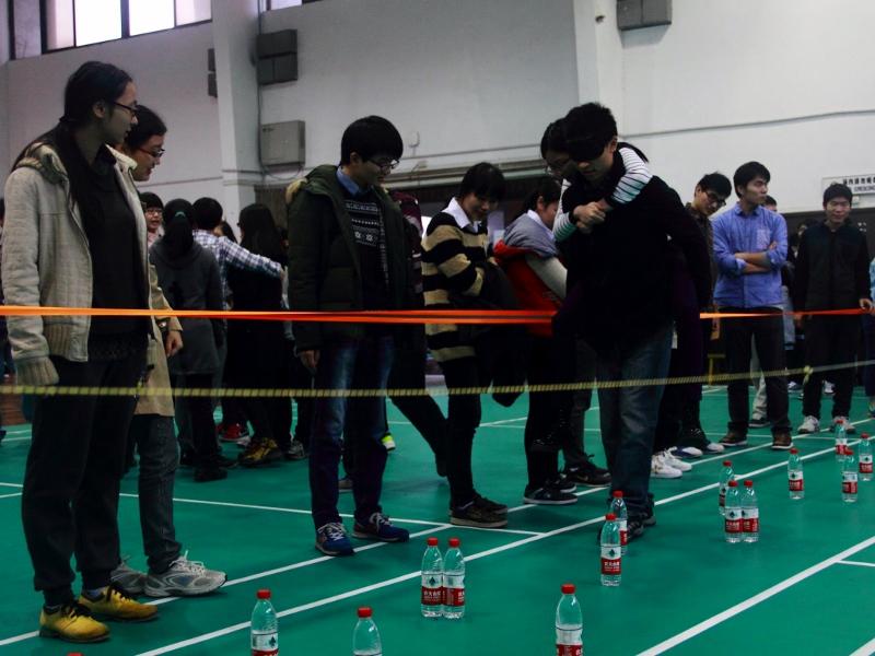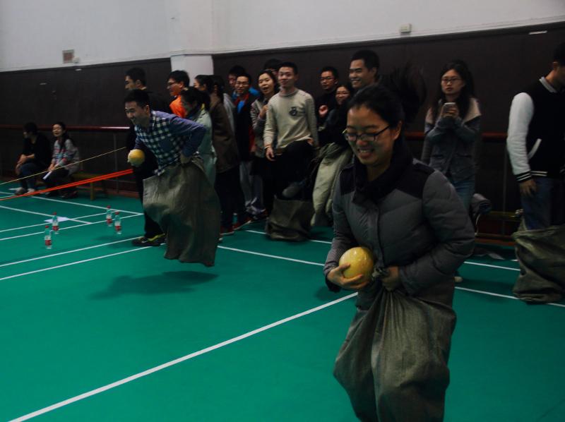 20141129日上午9时,团员们齐聚华家池校区邵逸夫体育馆附馆。比赛分为五个项目:快速转换,患难与共,袋鼠运柚子,指压板接力赛,集体跳大绳。五个比赛得分相加即为总分。按照总分高低,决出最终名次。每个项目由项目策划人及工作人员负责组织及评判。快速转换比赛中的投篮环节最受瞩目,各班都派出了最为擅长的男生,出色的表现和紧张所致的失误均引起阵阵惊呼。患难与共考验的是队员的配合程度,戴上眼罩的团员在所背团员的指引下避开障碍物,以稳健的步伐迈向终点,每次惊险地绕开障碍物,场外助威的团员们都会兴奋地欢呼。袋鼠运柚子项目中各队员勇敢向前冲,因过于用力,部分同学最后一步“摔”向终点。指压板接力赛里参赛队员“咬牙切齿”完成踢毽子和跳绳任务,有意思的是,部分男生在踢毽子中表现出色,为团队的胜利立下汗马功劳。跳大绳比赛是集体项目,所有团员均参与其中,医学院团委书记兼10级辅导员陈超老师也加入其中。各团支部不断调整队员顺序及甩绳方式与频率直至最合适。三分钟的比赛时间中甩绳同学和参赛同学全神贯注,即使疲惫,为了集体的胜利咬牙坚持。其中公口基团支部的队员们表现出了非同一般的默契和敏捷,遥遥领先夺得第一。通过得分统计,1008团支部夺得本次趣味运动会的第一名, 1002、1009团支部获得二等奖,1005、公口基、1003团支部获得三等奖。最后,由团总支向获奖团支部颁发奖品。