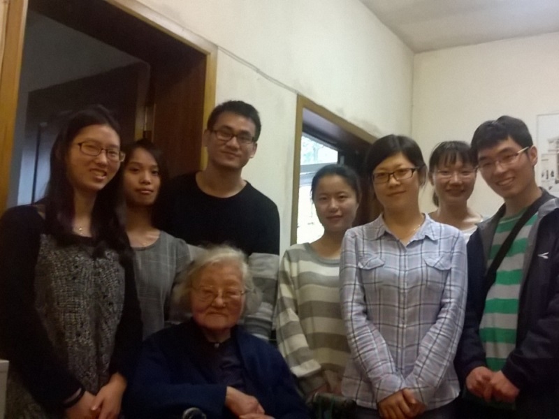 第二队志愿者则在劳姐姐的引领下来到了一位“空巢老人”的家,慰问了离休干部朱良沄女士。朱奶奶的先生张堂恒教授几年前过世,唯一的女儿定居国外聚少离多,又限于行动不便,很难走出房门像其他老人一样享受老来乐。朱奶奶见到志愿者们来看望她很是欣喜。志愿者们与老人从日常起居和身心健康,聊到她求学的经历和与人生的坎坷,无不为老人年轻时求学工作的刻苦努力而感慨,也无不为老人和丈夫在逆境中相依相守、忠于祖国的真诚而赞叹!朱奶奶和志愿者们聊到开心处,还一展歌喉,唱了一首英文歌呢!