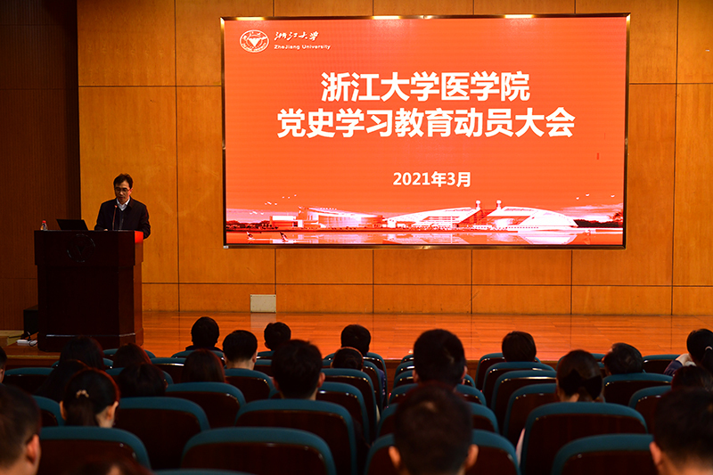医学院党委常务副书记夏标泉为会议致辞。他指出,在全党开展党史学习教育是党中央立足党的百年历史新起点、统筹中华民族伟大复兴战略全局和世界百年未有之大变局、为动员全党全国满怀信心投身全面建设社会主义现代化国家而作出的重大决策。全体师生党员同志要牢记习近平总书记的号召,通过个人自学、集体研讨、实地研学等,切实做到“学史明理、学史增信、学史崇德、学史力行”。将党史学习成效融入到新时代学院的改革发展中,学党史、悟思想、办实事、开新局,为加快建设更高质量、更加卓越、更受尊敬、更有梦想的中国特色世界一流医学院不懈奋斗!