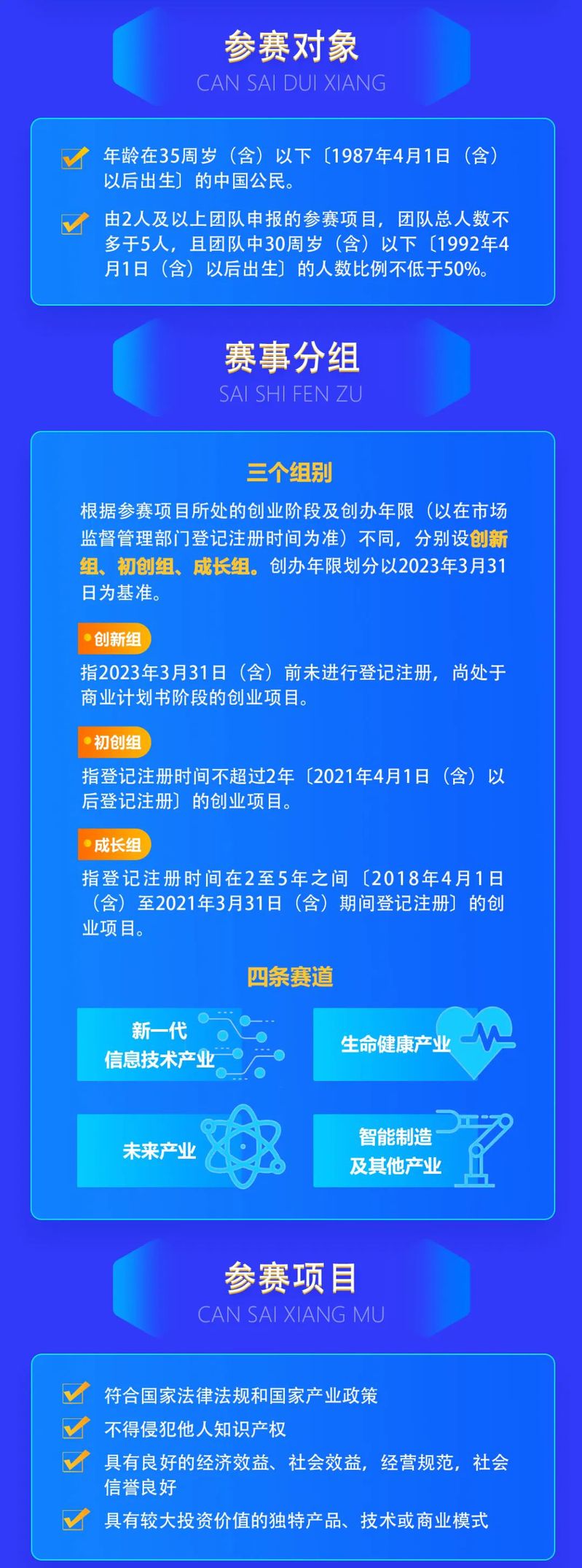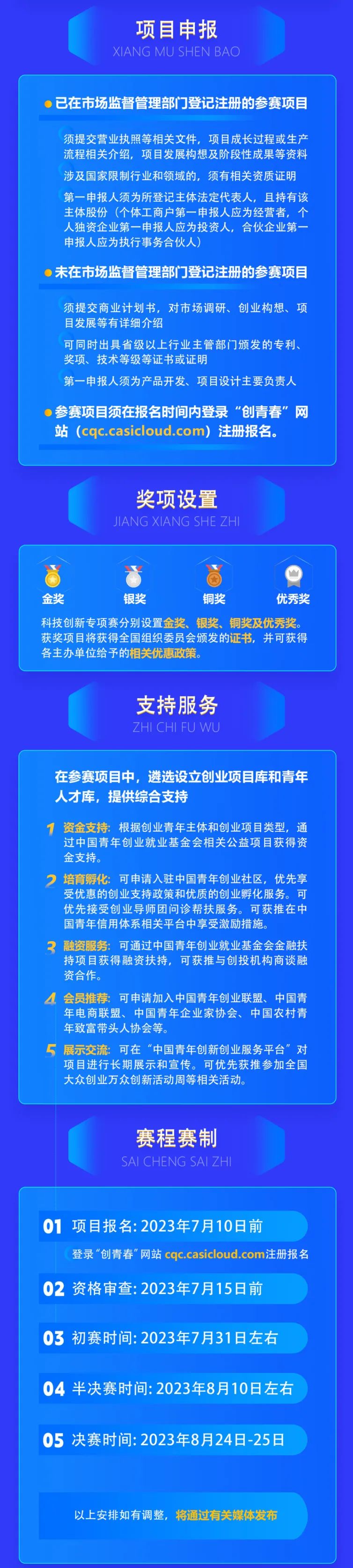 现开展第十届“创青春”中国青年创新创业大赛(科技创新专项)的推荐报名工作,赛事详细信息请参考下图。
